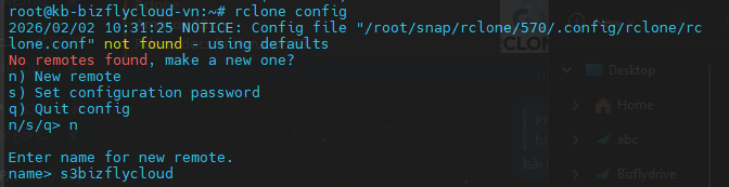 Tại dòng name, nhập tên kết nối của bạn, trong ví dụ này tôi sử dụng tên kết nối là s3bizflycloud